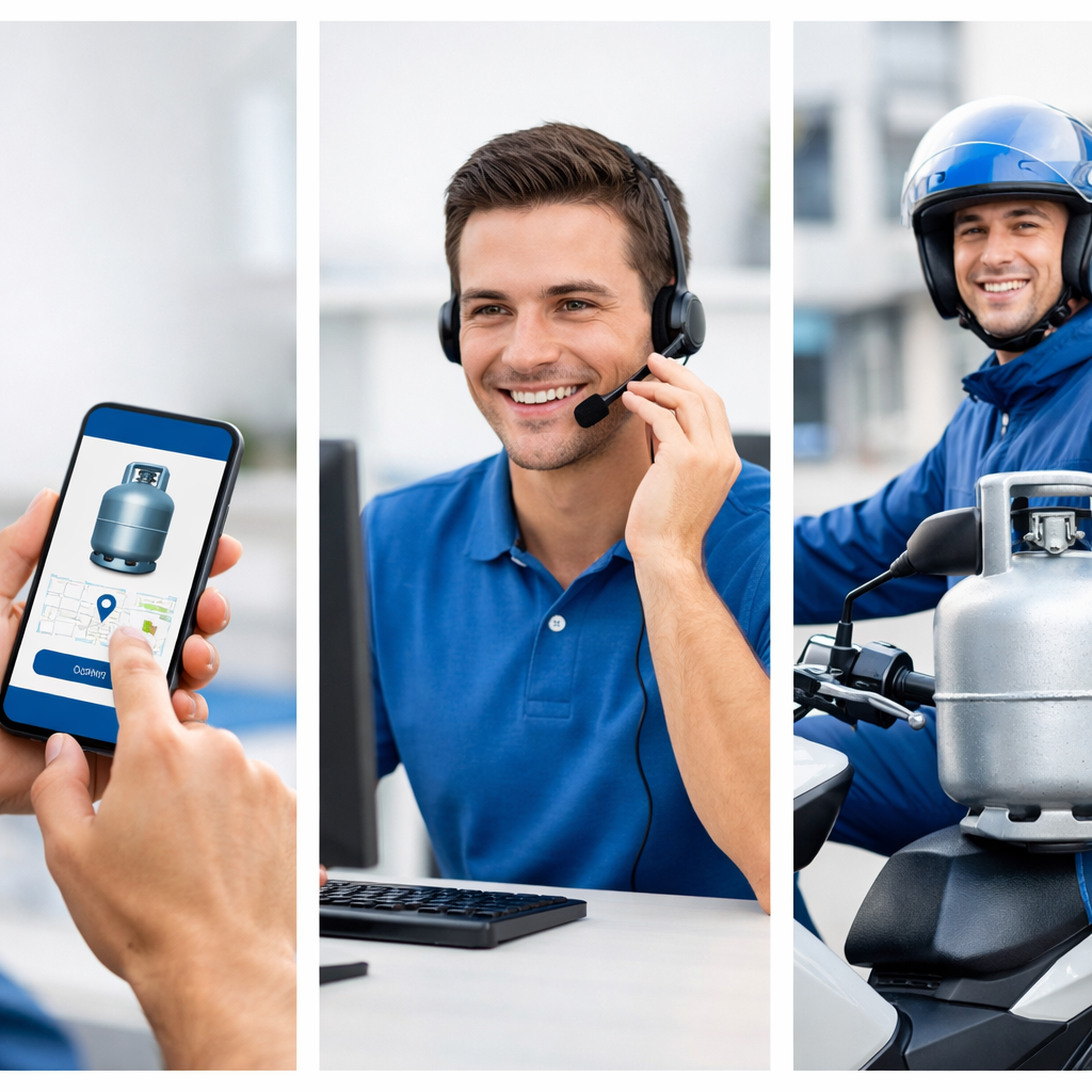 Realizamos atendimento rápido via Tele Gás (Disk Gás) ou pelo nosso site, garantindo entrega em até 30 minutos diretamente na sua casa.